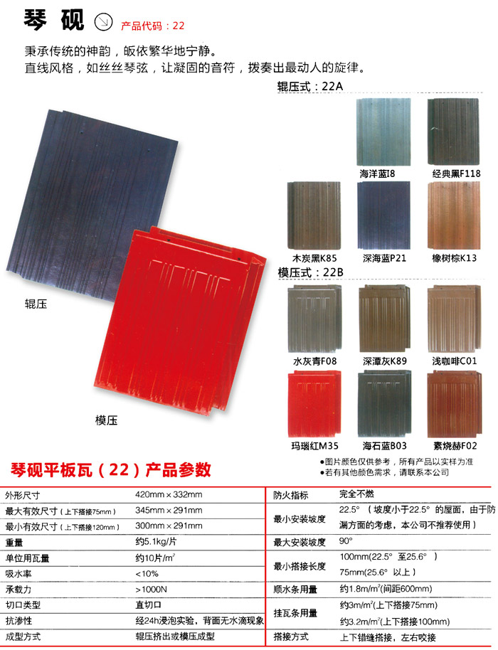 由于生產廠家用材不一樣因此色調也一些不一樣。在色調耐受性上,整體瓦比鍍層瓦好一些,整體瓦保色時間更久,鍍層瓦一般3-五年色調固色。從美觀大方上看,涂敷瓷磚表面光滑度高,一般瓷磚表面凸凹不平。因為瓷磚的表面上色是由混凝土黏合劑擠壓成型而成,因而不建議在風雪比較嚴重的地域應用涂有建筑涂料的瓷磚。